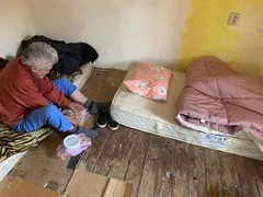 Apoi a spus că nepoata lui l-a bătut și l-a scos din casă, dar se întoarce mai târziu și încearcă să intre acolo, dar a fost și acum nu e nimeni… L-am sunat pe Florin și l-am dus la căsuța pe care o cumpărasem împreuna cu un teren acum un an, cu gândul de a face un bloc anul acesta acolo. Din păcate nu sunt cine știe ce condiții, soacra mea i-a încălzit mâncare și i-a pus o pernă și lenjerie, o geacă groasă, i-am pus o salteluță, scaune, un calorifer, mâine aduc un radio. Nu este apă acolo, dar cred că e mai mult decât sub cerul liber, și cu atât de mare risc de comtaminare, mai ales pentru cei de vârsta lui…