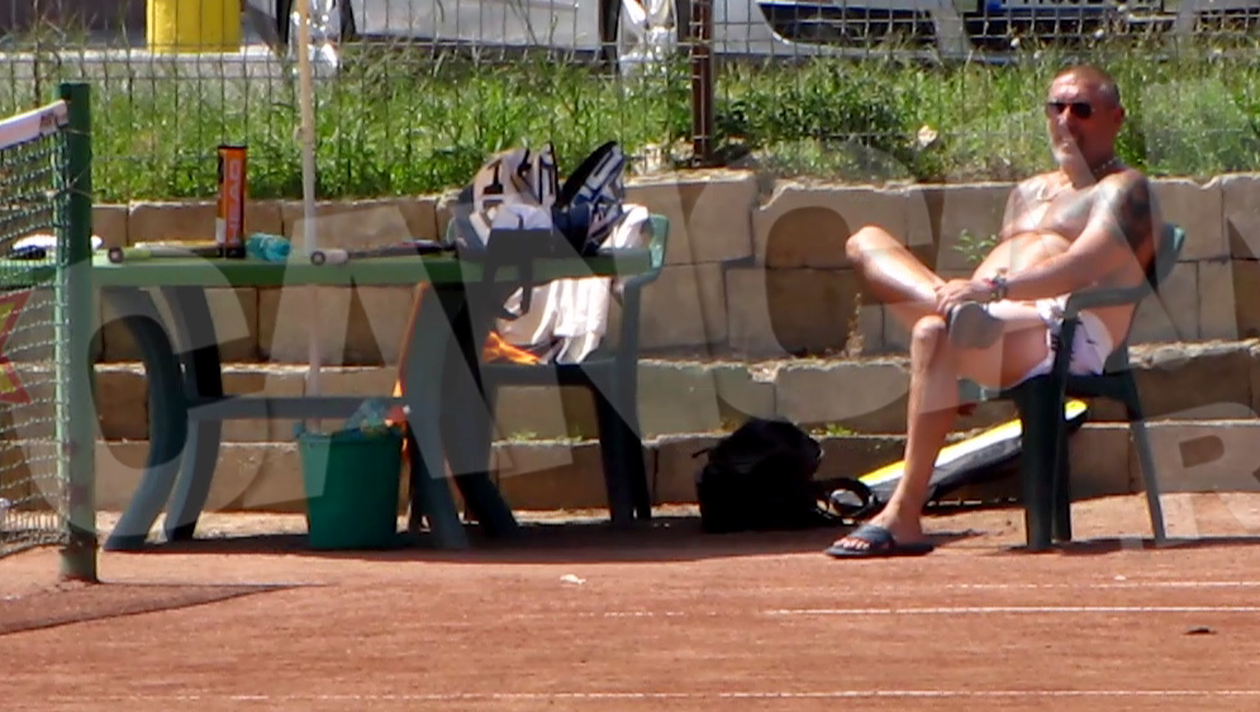 Mereu pus pe glume si cu rasul lui inconfundabil, Serghei a decis sa isi expuna tatuajele si sa se bronzeze la o partida de tenis.