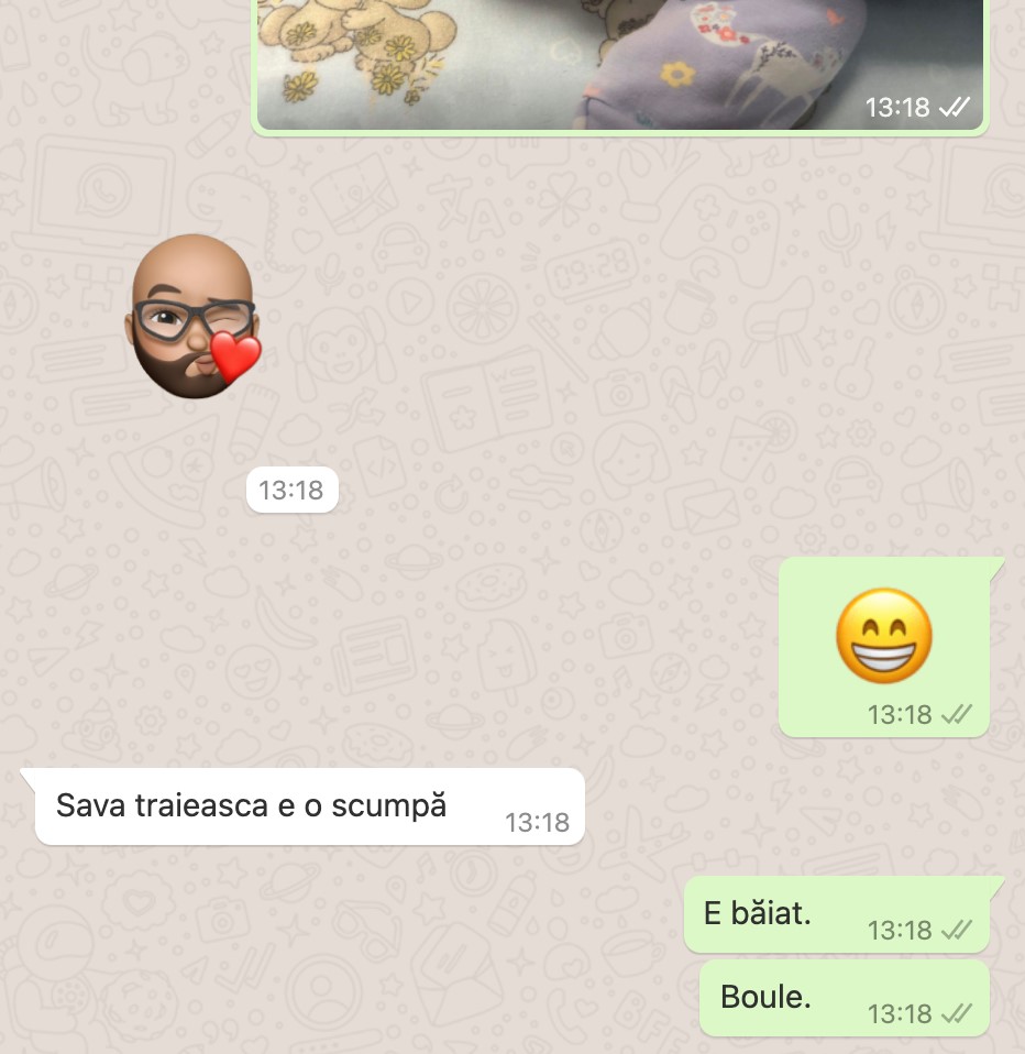 Imediat după e a aflat că a devenit tată de băiat, Cabral a împărtăși vestea cu apropiații săi. Acesta le-a trimis prietenilor o fotografie cu bebelușul, iar reacția unuia dintre ei a fost chiar hilară, amuzând pe toată lumea. Vedeta de la Pro Tv a publicat pe rețelele de socializare întraga discuție, iar internauții s-au amuzat copios. (CITEȘTE ȘI: CUM A AFLAT SOȚIA LUI CABRAL CĂ ESTE ÎNSĂRCINATĂ PENTRU A DOUA OARĂ. ANDREEA IBACKA: „AM FOST ȘOCATĂ”)