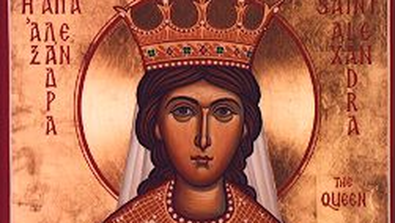 Alexandra muceniţa lui Hristos Dumnezeu era soţie împăratului Diocleţian; deci văzând ea că sfântul Gheorghe era chinuit în felurite chipuri spre moarte, dar că în chip minunat rămâne viu şi sănătos, s-a înfăţişat împăratului, în vreme ce aducea el jertfă idolilor, s-a mărturisit pe sine creştină înaintea împăratului. De aceea a fost pusă în închisoare; după acestea dându-se hotărâre ca să fie tăiaţi Gheorghe şi Alexandra, aflând ea aceasta în închisoare s-a rugat lui Dumnezeu, şi şi-a dat sufletul. Iar Apolo şi Isachie şi Codrat, fiind slugi împărătesei Alexandra, şi văzând-o pe ea că a dispreţuit vremelniceasca şi stricăcioasa împărăţie şi pe muritorul împărat, şi că, crezând în Hristos, a şi murit pentru El, au crezut şi ei în Hristos. Şi înfăţişându-se cu îndrăznire au mustrat pe împăratul numindu-l călcător de lege şi sălbatic, şi că nu i-a fost milă de însăşi femeia sa, cu care a făcut copii. Mâniindu-se împăratul pentru aceasta, a poruncit ca să-i pună la închisoare, şi aceasta făcându-se, gândea el toată noaptea eu ce moarte îi va pierde, iar dimineaţa scoţându-i din temniţă, pentru Codrat a poruncit să fie tăiat; iar Apolo şi Isachie, iarăţi să fie puşi la închisoare, şi să fie ucişi cu foamea; care după câteva zile fiind istoviţi de foame, şi-au dat sufletele lor Domnului.