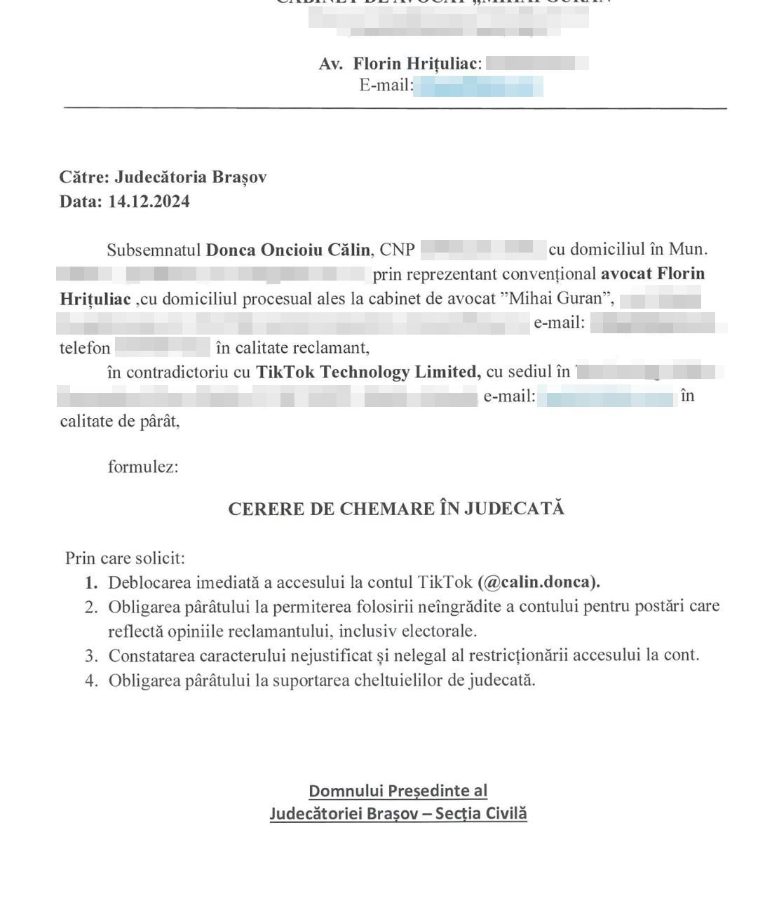 În exclusivitate pentru CANCAN.RO, Călin Donca a dezvăluit că ar putea în orice moment să-și deschidă un alt cont de TikTok, însă avocatul acestuia a decis că lucrurile nu pot rămane așa! Astfel, au decis împreună să se adreseze instanței de judecată pentru ca aceasta să facă dreptate în cazul afaceristului.