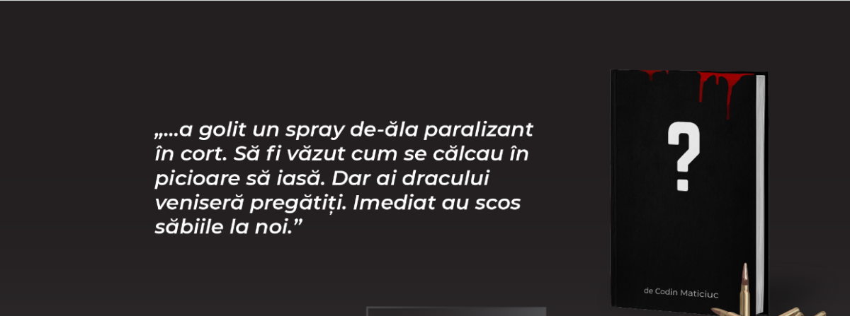 Codin Maticiuc lucrează din 2017 la misterioasa carte. Pasajele sunt, însă, cutremurătoare. „De tăiat, n-am tăiat pe nimeni. Și când aveam cuțit, îl țineam pe stânga și doar îl desfăceam ca să le iau ochii cu el când le dădeam croșeul de dreapta.