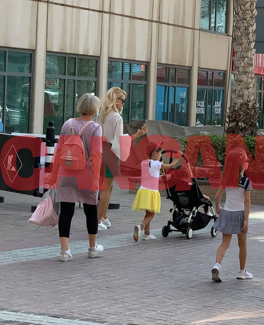 Îmbrăcată lejer, într-o pereche de pantaloni scurți și verzi, o cămașă vaporoasă într-o nuanță de roz pudrat, artista a stat cu ochii ațintiți pe fiicele sale. Din spate, mama acesteia le supraveghea, și ea, extrem de atent, pe micuțe.