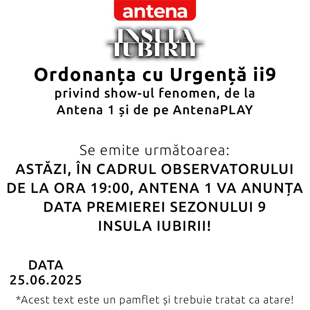 „Ordonanța cu Urgenţă ii9 privind show-ul fenomen, de la Antena 1 şi de pe AntenaPLAY