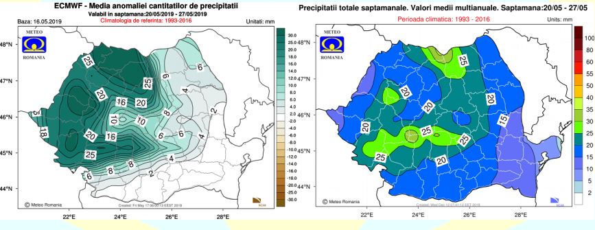Precipitațiile vor fi excedentare mai ales în regiunile centrale, vestice și sud-vestice, iar în rest vor fi apropiate de cele normale pentru această perioadă.