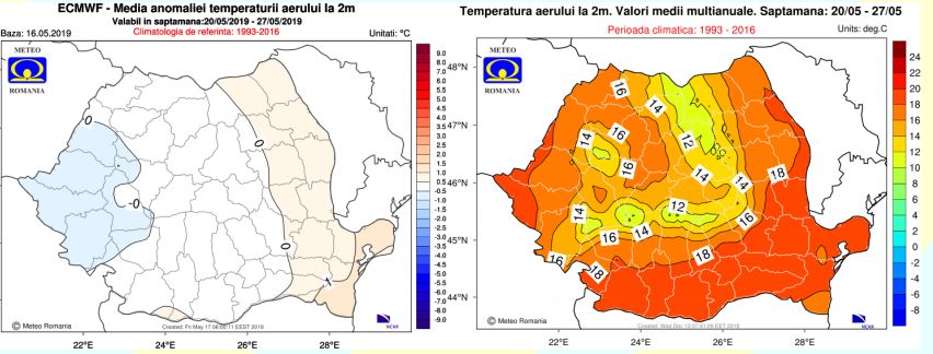 TEMPERATURA MEDIE A AERULUI: Valorile termice se vor situa, în general, în jurul celor specific acestei perioade. Regimul pluviometric va fi excedentar în regiunile intracarpatice, dar mai ales în zonele montane și submontane aferente, iar în rest va fi în general apropiat de cel normal pentru această perioadă.