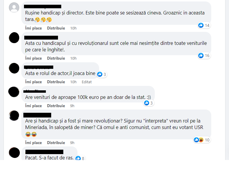 „Păcat, s-a făcut de râs”, „Are și venituri de handicap și de revoluționar și de director”, „Are peste 100.000 euro anual doar de la stat!”, sunt doar câteva dintre comentariile apărute.