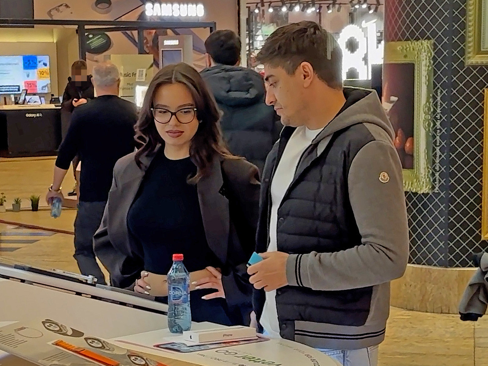 Prima oprire a fost o cafenea, pentru ca ambii să-și dea un refresh pentru o sesiune de shopping ca la carte. După ce s-au energizat, au pornit către o insulă din mall cu accesorii pentru telefoane. În fața celor doi trona o cutie albă, imaculată, de IPhone.