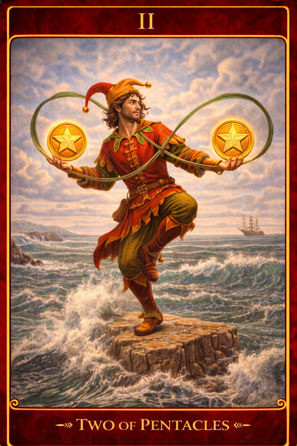 Această carte arată capacitatea de a face față la două situații importante în același timp. Schimbarea nu este haotică, ci poate deveni armonioasă dacă este gestionată corect. Doi de Monede sugerează că, deși lucrurile par instabile la suprafață, există potențial pentru echilibru și control.