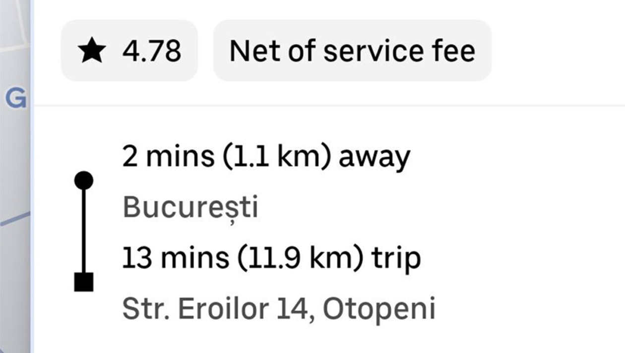 Zilele trecute, un bărbat a postat pe un grup de Facebook dedicat șoferilor și clienților de Uber și Bolt o captură de ecran în care prezenta cursa pe care a avut-o. Acesta trebuia să ajungă din București la Aeroportul Otopeni. Distanța este de aproximativ 12 km. Pentru această rută, costul a fost de doar 17,65 lei. Prețul l-a șocat pe client, iar inițial a crezut că este o greșeală.
