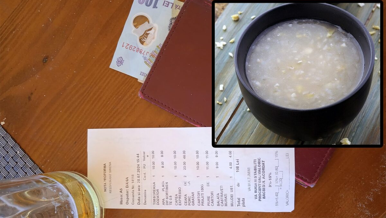 Însă, deși se aștepta la ce e mai rău, acesta a fost plăcut surprins atunci când pentru o bere (10 lei), o apă plată (8 lei), o cafea (10 lei), o ceafă de porc cu cartofi prăjiți (56 de lei), un piure (11 lei), o salată de castraveți murați (9 lei) și un mujdei (4 lei) a scos din buzunar doar 108 lei. Se pare că acesta a găsit un restaurat decent, unde prețurile nu au explodat.