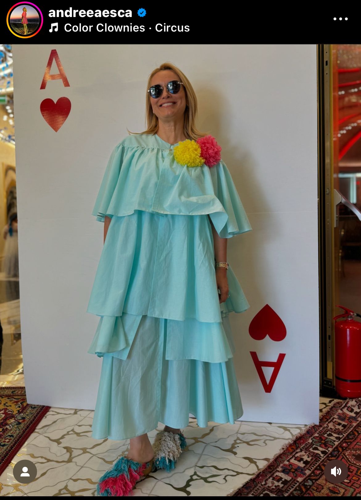 De la petrecere nu au lipsit cele mai importante nume din trustul Pro, iar printre aceștia s-a numărat și Andreea Esca. Prezentatoarea știrilor a atras toate privirile asupra sa, mai ales că ținuta pe care a ales-o a respectat întocmai tematica petrecerii. Dacă la cununia religioasă a optat pentru o rochie ceva mai elegantă, la marea petrecere știrista a purtat o rochie lejeră, de vară, de culoare turqoise – accesorizată cu două flori din material roz și galben în piept și o pereche de încălțăminte spectaculoasă.