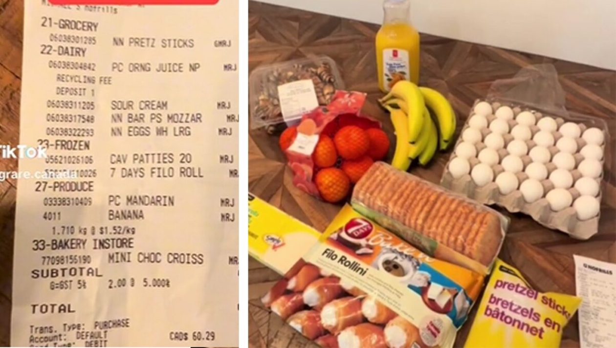Așadar, româna din Canada a achiziționat o pungă de sticksuri, pe care a dat 2 dolari și câțiva cenți, niște rulouri umplute, care au costat 9 dolari, dar și un baton de mozzarela la prețul de 9 dolari. De asemenea, aceasta a mai luat un fel de biscuiți mari la 7 dolari, o pungă de mandarine la 7 dolari, o caserolă cu cornulețe cu ciocolată la 6 dolari și 6-7 banane la prețul de 2,60 dolari.