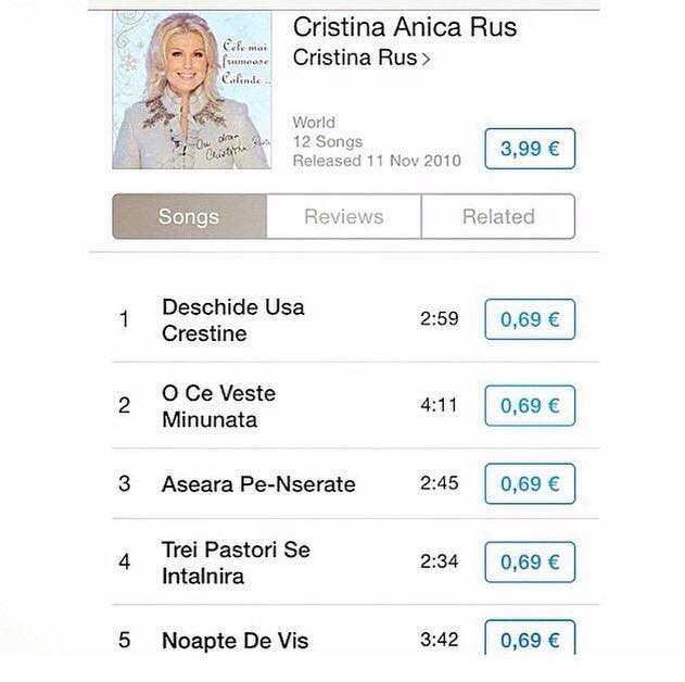 La inceputul lunii decembrie, Cristina Rus primea poate cea mai cumplita veste. Sotul ei, afaceritul Dragos Bilteanu, a fost retinut pentru 30 de zile sub acuzatia de delapidare pentru un prejudiciu de 13 milioane de euro. Se pare ca barbatul is va petrece sarbatorile in spatele gratiilor, in timp ce sotia si cei doi copii ai lor vor avea parte de cel mai trist Craciun. Pentru a nu resimti acest impas, artista a decis sa-si scoata la vanzare albumul cu piese de Craciun. Mai exact, cei care vor sa-i asculte melodiile sunt nevoiti sa scoata din buzunar suma de 4 euro pentru intreg albumul sau cate 0.70 euro pentru fiecare piesa in parte. Acest lucru se poate face doar cu ajutorul telefonului mobil sau gadget-urilor, albumul fiind disponibil doar in domeniul online. Se pare ca solista a gasit un mod eficace de a face rost de cativa bani, fara sa se agite prea mult.