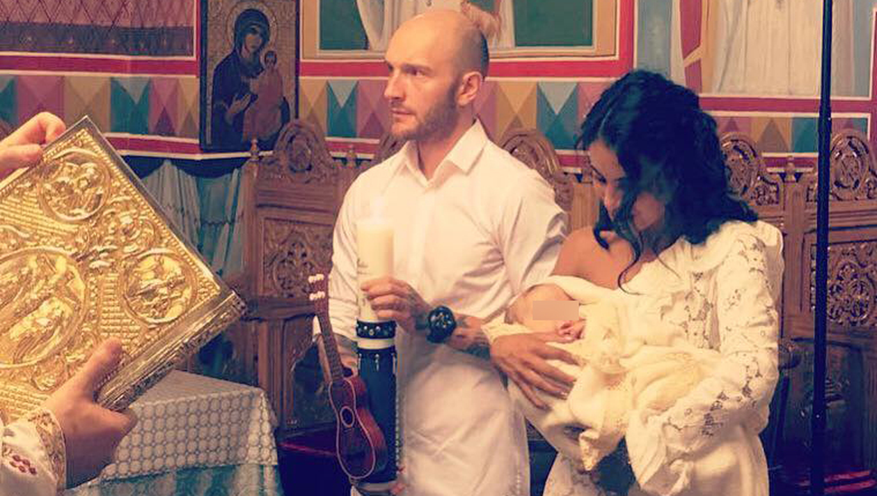 Livia, soţia actorului, a postat pe pagina sa de Facebook mai multe fotografii de la marele eveniment, în care ea şi soţul ei au creştinat un bebeluş.