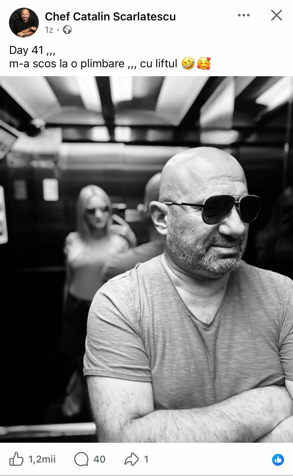 „Day 41… M-a scos la o plimbare… cu liftul”, a scris Cătălin Scărlătescu.
