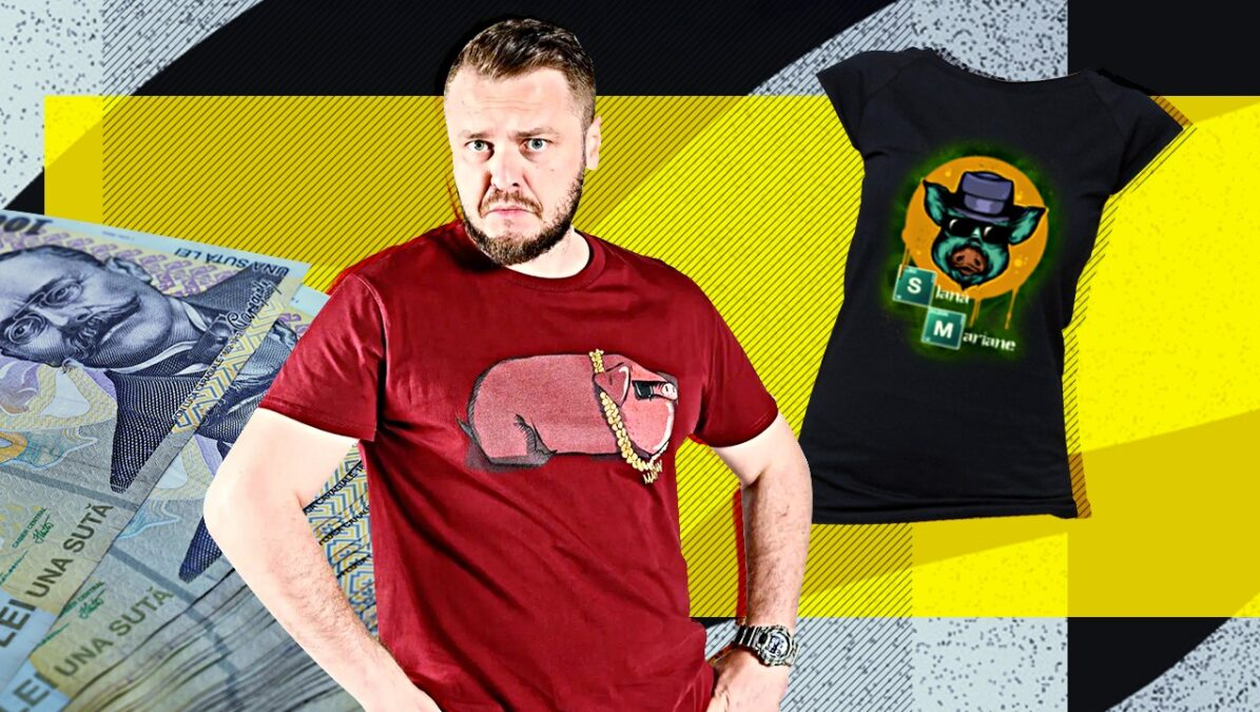 Câți lei costă tricourile cu „slană” ale lui Nelu Cortea. Comediantul își face reclamă la America Express