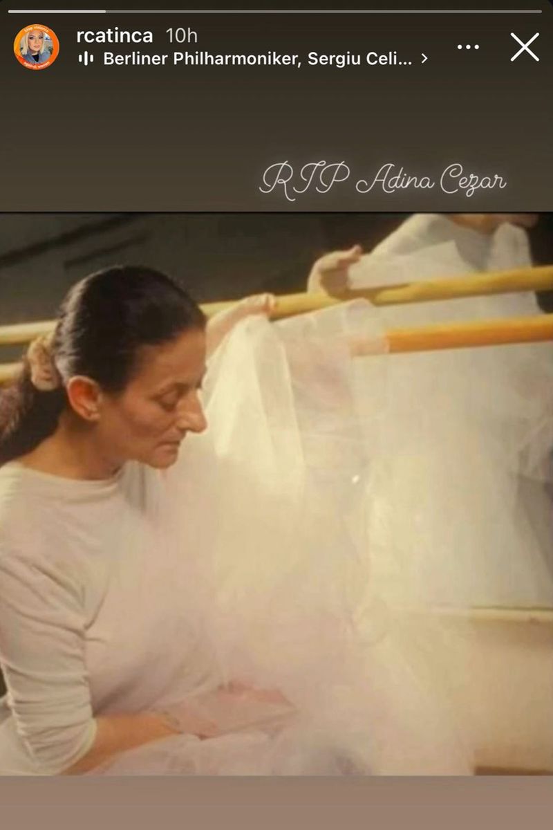 „RIP Adina Cezar”, a fost mesajul publicat de Catinca Roman pe pagina sa de Instagram.