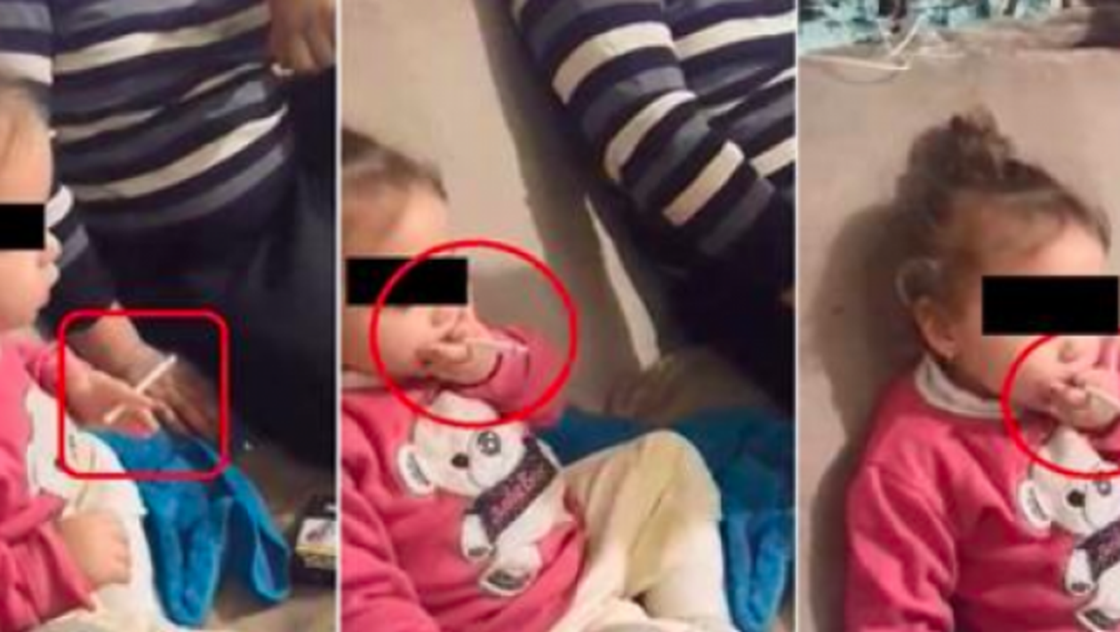 O fetiţă de 2 ani fumează. Mama îşi pune copilul să tragă cu s…