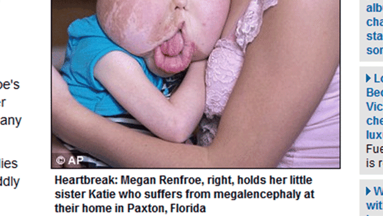 Katie Renfroe, o fetiţă în vârstă de patru ani, suferă de o boală genetică extrem de rară, care i-a mărit trăsăturile feţei neobişnuit de mult.