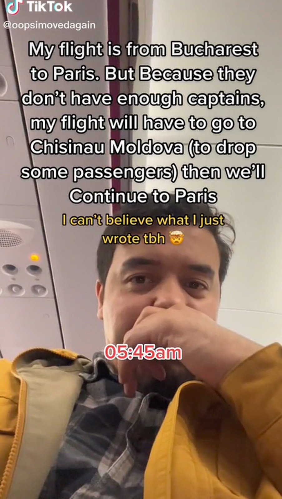 „Zborul meu este din București, către Paris. Deoarece compania nu are suficienți căpitani de zbor, avionul va ajunge mai întâi în Chișinău, Moldova (pentru a lăsa câțiva oameni), iar apoi vom continua să zburăm către Paris”, a scris americanul, într-o postare de pe contul său de TikTok.