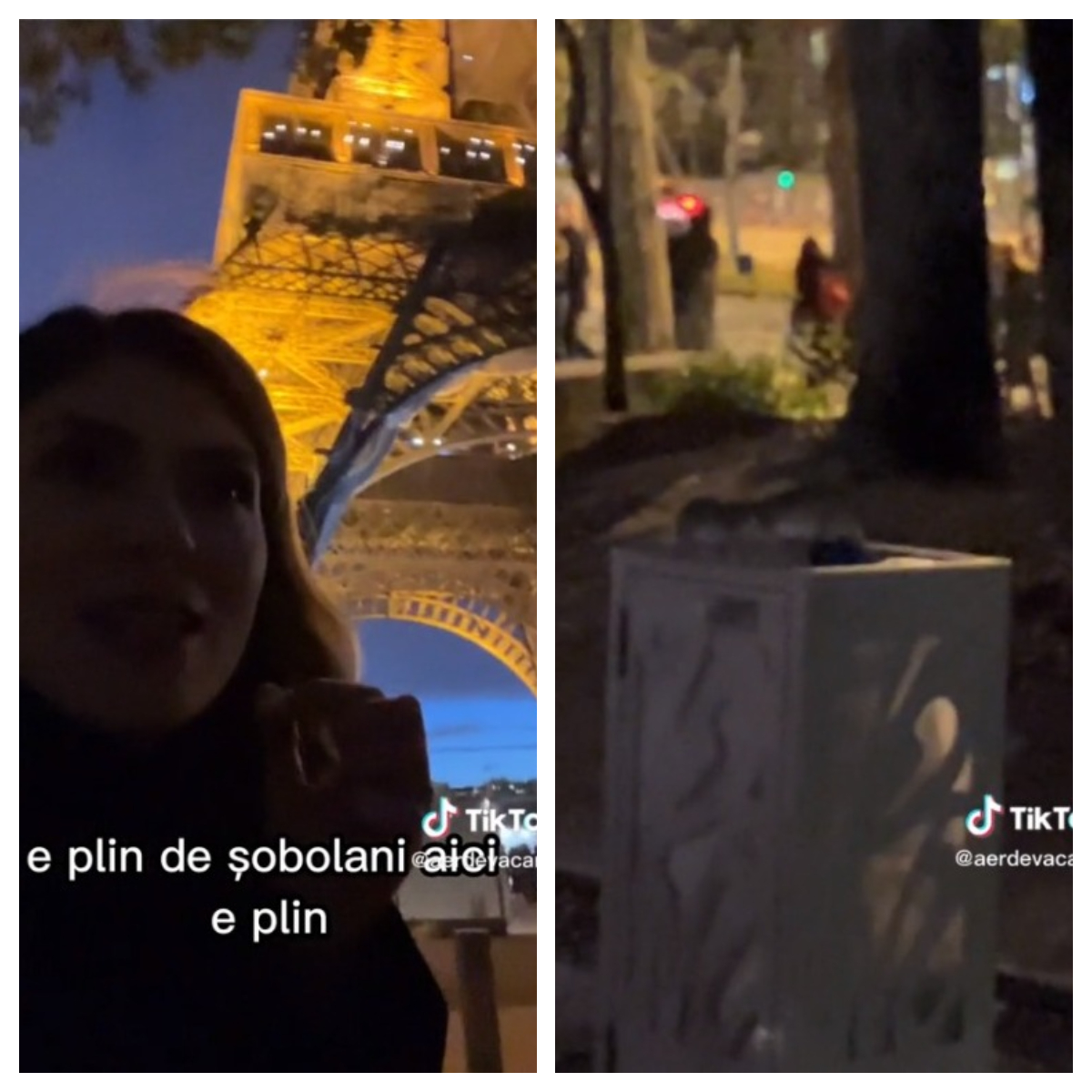 „Am crezut că e un mit asta cu șobolanii, dar e plin de șobolani aici. E plin, plin. Uite-l! Deci e plin de șobolani la Turnul Eiffel. Se aprind luminițele și apar șobolanii. Uite-l acolo, uite-l ce mare e!”, au spus cei doi români, în filmulețul postat pe Tik Tok.