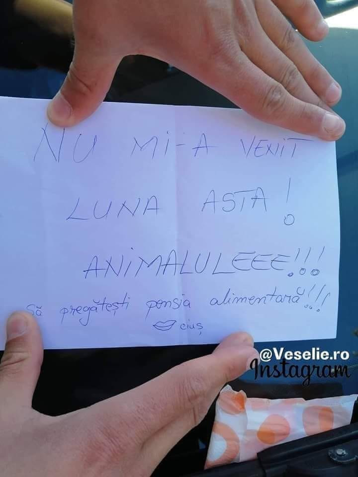Confuz, reacția lui Ionuț n-a întârziat să apară: ”Am găsit bilețelul ăsta sub ștergătoare… ce naiba nu i-a venit luna asta?”, a scris tânărul pe Facebook. Doar că… după spusele sale, am înțelege că iubita ar fi de fapt o necunoscută cu care ar fi petrecut o noapte incendiară, iar apoi ar fi lăsat-o cu ochii în soare. De aici și reacția bizară a femeii. (VEZI ȘI: MARGHERITA DE LA CLEJANI A RECUNOSCUT ÎN SFÂRȘIT: „MĂ INJECTEZ CU…”)