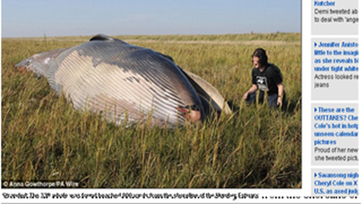 Potrivit „Daily Mail”, specialistii considera ca balena s-ar fi ratacit in zona de „apa mica”, s-ar fi putut intoarce pe spate, astfel, murid sufocata. Dupa retragerea marii, aceasta a fost lasata in urma, in apropierea satului Skeffling. Acest eveniment poate fi explicat, conform acelorasi specialisti, prin schimbarea curentilor marini care aduc valurile reci din Oceanul Arctic in Marea Nordului.