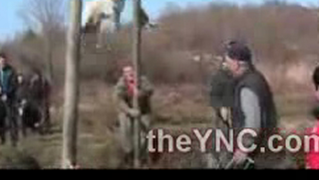 Intr-un sat din Rusia un grup de barbati supun cainii la o tortura inimaginabila. Ii invart in aer, dupa care acestia plonjeaza in apa.