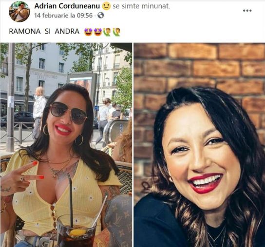 De câteva săptămâni încoace, Adrian Corduneanu nu se mai oprește din postat fotografii cu Andra și Ramona pe contul lui de socializare, invitându-și fanii să constate singuri asemănarea izbitoare. Celebrul interlop a realizat că cele două au trăsături comune chiar de Ziua Îndrăgostiților, atunci când și-a scos soția în oraș, la o terasă.