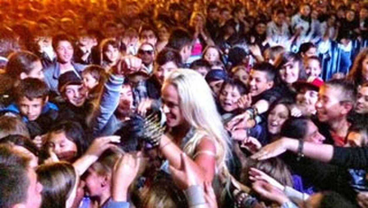 Anda Adam a vrut sa le multumeasca fanilor si a facut un gest pe care l-ar fi putut regreta, dar spre fericirea artistei, publicul a fost unul linistit si s-a bucurat ca o pot avea atat de aproape.Toti cei prezenti la concert s-au inghesuit s-o atinga pe frumoasa blondina, macar cu deget.