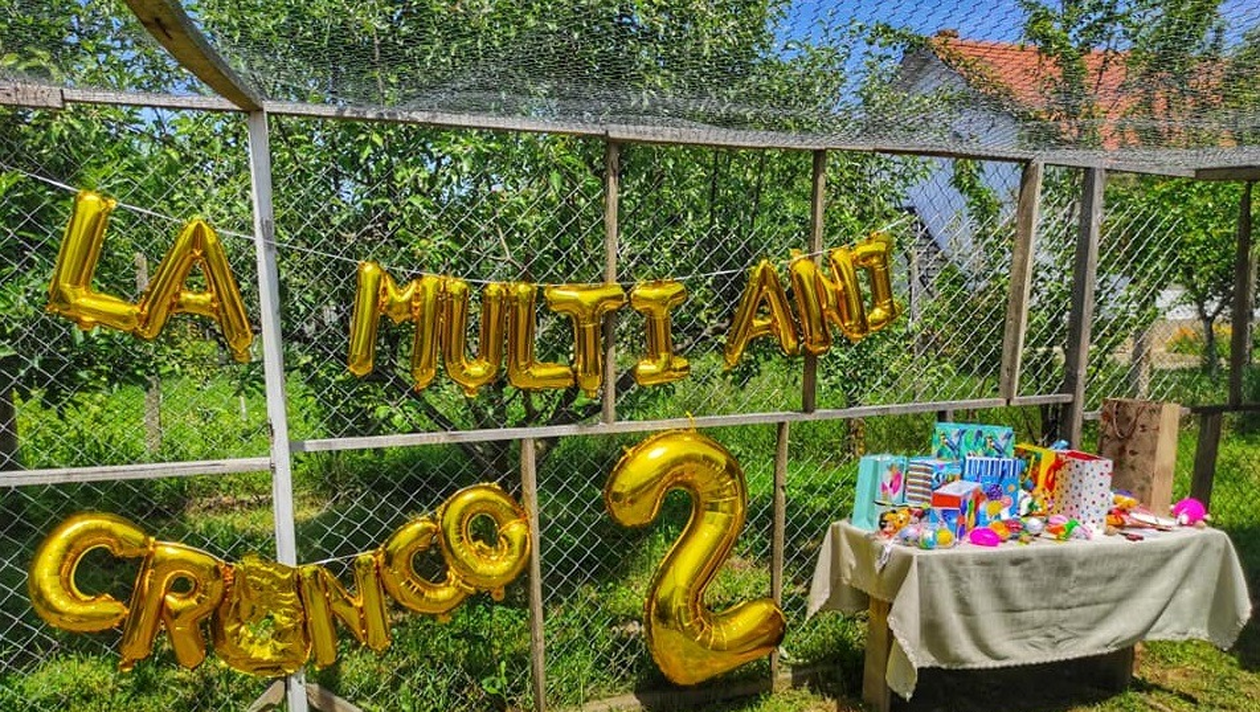 În weekend, Cronco a împlinit doi ani și a avut invitați. „Părinții” adoptivi, Simona și Miti, i-au organizat o petrecere adevărată, la care au participat mai mulți copii. Prietenii lui Cronco i-au adus cadouri și i-au cântat “La mulți ani”.