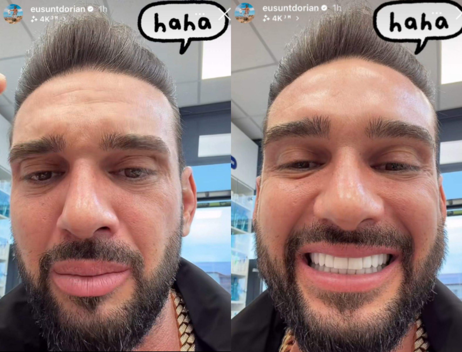 „Mă enervează că încă nu râd normal! Bine e și gogoașă, dar când râd, se blochează aici un pic, încă nu și-au revenit mușchii și nici pe el (n.r. nasul) nu-l simt așa încă al meu. Aici, ușor, ușor au început să revină mușchii”, a spus Dorian Popa, pe Instagram.
