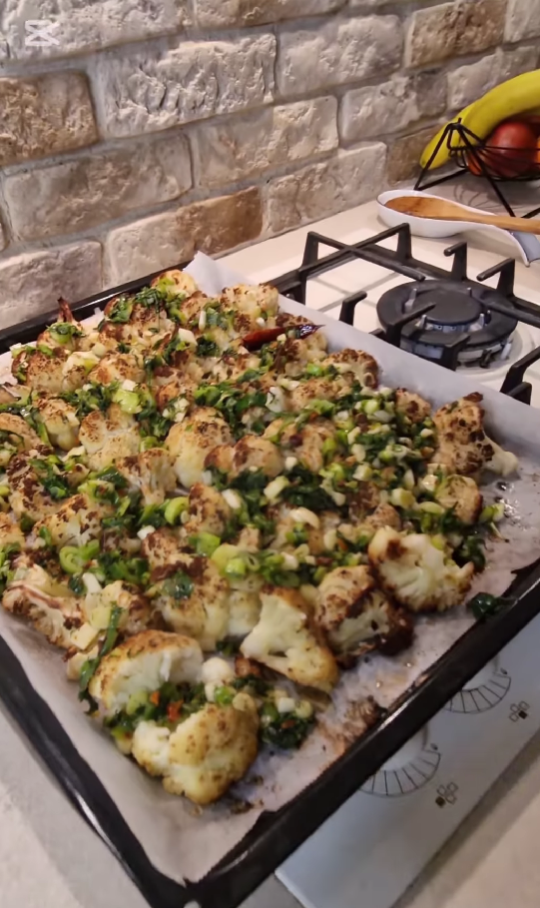 În filmulețul postat pe rețelele de socializare, Anca Țurcașiu a dezvăluit și ingredientele pe care le-a folosit. Dacă doriți să preparați acasă această rețetă, aveți nevoie de conopidă, 2-3 linguri ulei de măsline, sare după gust, piper după gust, ceapă verde, usturoi verde, 1 legătură de mărar proaspăt, 1 legătură de pătrunjel proaspăt și fulgi de chili după gust.