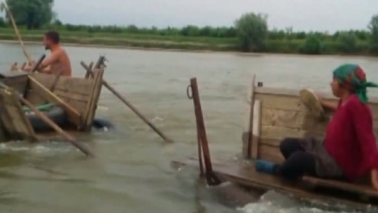 Animalul a fost singurul care a simtit pericolul si a refuzat sa inainteze pentru ca apa crestea simtitor. In acel moment barbatul mai tanar incepe sa loveasca animalul iar carutele mai mult plutesc. In atelajul din urma, sta speriata femeia in varsta de 45 de ani.