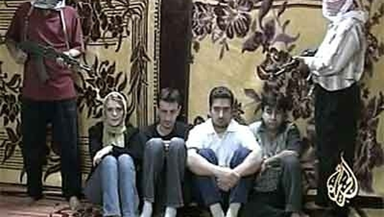 Pe 22 aprilie 2005, criza ostaticilor atinge punctul culminant. Postul de televiziune Al Jazeera transmite un mesaj de la rapitori, care se identifica drept „Brigazile lui Mu’adh Bin Jebel”.