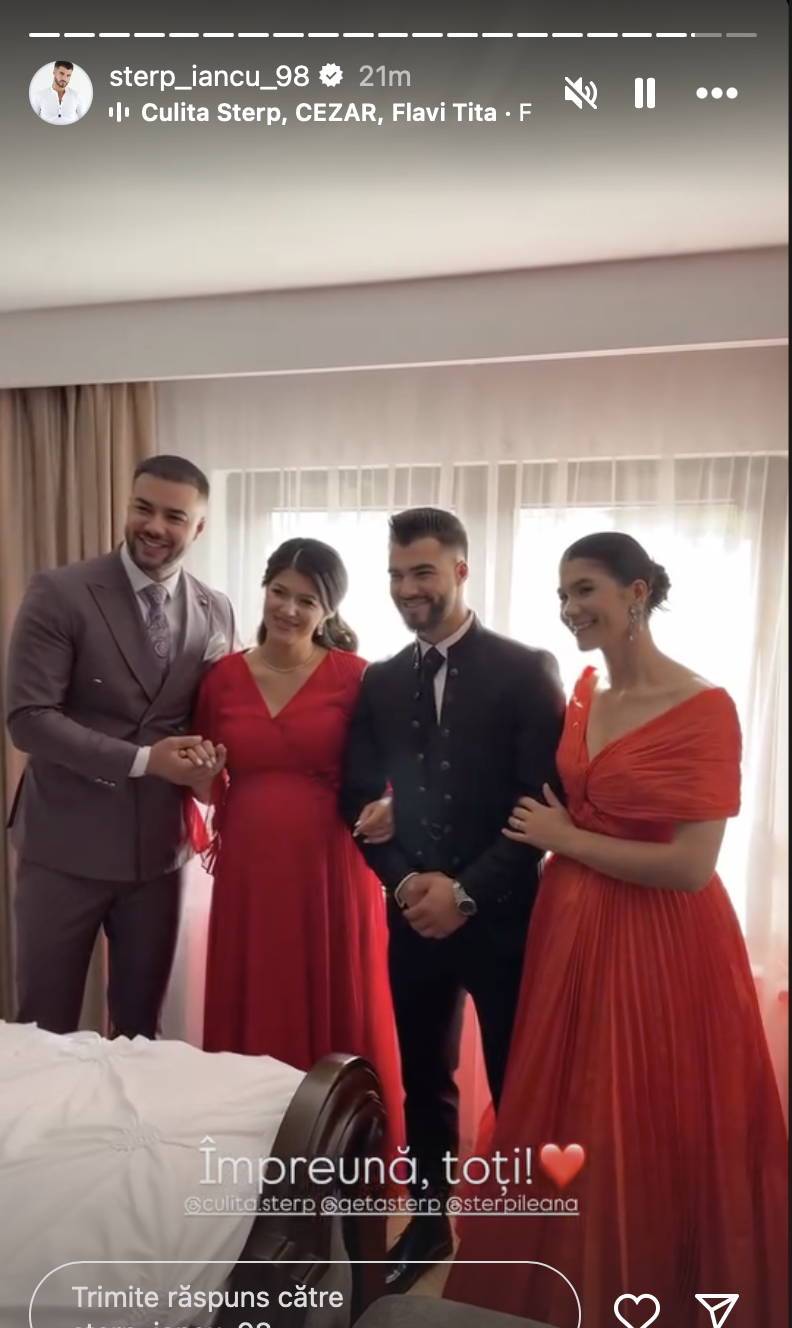 Ceremonia de azi vine la o săptămână după cununia civilă, unde marele absent a fost fratele mirelui, Culiță Sterp. Motivul absenței sale de la acel eveniment a fost programul încărcat din cauza unui concert în străinătate, pe care nu l-a putut anula. Culiță a fost totuși alături de familie și fratele său azi, la ceremonia religioasă și la petrecerea din Ținutul Hațegului, fiind un moment cu o încărcătură emoțională aparte pentru întreaga familie.