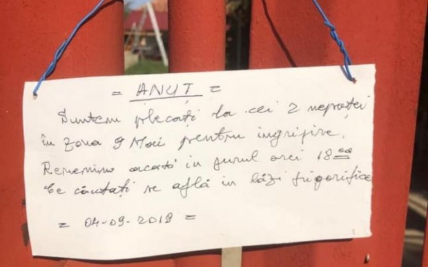 Familia respectivă a avut o idee la care nu s-ar fi așteptat nimeni, agățând un bilețel la poartă și explicându-și, astfel, absența.