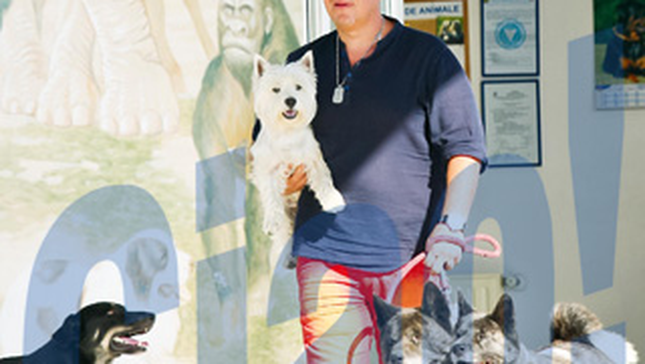 Zilele trecute, solistul trupei Proconsul a mers cu patrupezii sai la veterinar. Pe Archie, cel mic, l-a luat in brate, in timp ce pe Shanti si Nanook, din rasa Akita Inu, i-a tinut in lesa, fara sa intampine probleme din partea lor.