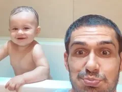 George Burcea a publicat pe Instagram Stories un clip scurt în care apare de Clara în timp ce îi făcea baie. După cum puteți vedea în galeria foto a articolului, pe imagini, el a scris două mesaje: “Lăpticul meu nr. II face 1 an de zâmbete și biberoane” și “Clărița, scărița”. La câteva minute bune după ce a făcut această postare, actorul a pus fotografia alb-negru de mai jos în dreptul căreia a așternut aproape aceleași gânduri.