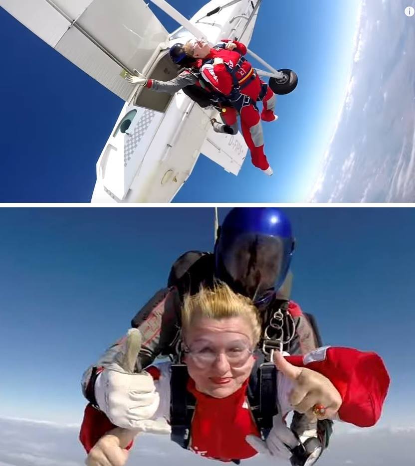 „Ideea e că am simţit nevoia, acum doi ani, la 46 de ani, să-mi sărbătoresc ziua de naştere puţin mai altfel. Am vrut altceva şi am zis ce să fac. Ah, asta e de mine. Şi m-am hotărât. Recunosc că cu cât urcam mi se strângea inima. S-a deschis uşa, pe genu’ vă rugăm să coborâţi, în momentul ăla în care se deschide uşa se amplifică zgomotul, bate vântul şi atunci te gândeşti, Doamne în ce m-am băgat? Să sar sau să nu sar. Şi într-o fracţiune de secundă am zis, eh asta e culmea. Acuma să mă fac de râs? Nu eu mi-am dorit? Execută! Şi cum a fost saltul în aer? Minunat! În stresul ăla am vrut să închid ochii. Şi am zis de ce să închid ochii, trebuie să te bucuri, nu asta ţi-ai dorit?”, a povestit interpreta pentru Emisiunea CANCAN.RO de la România tv.