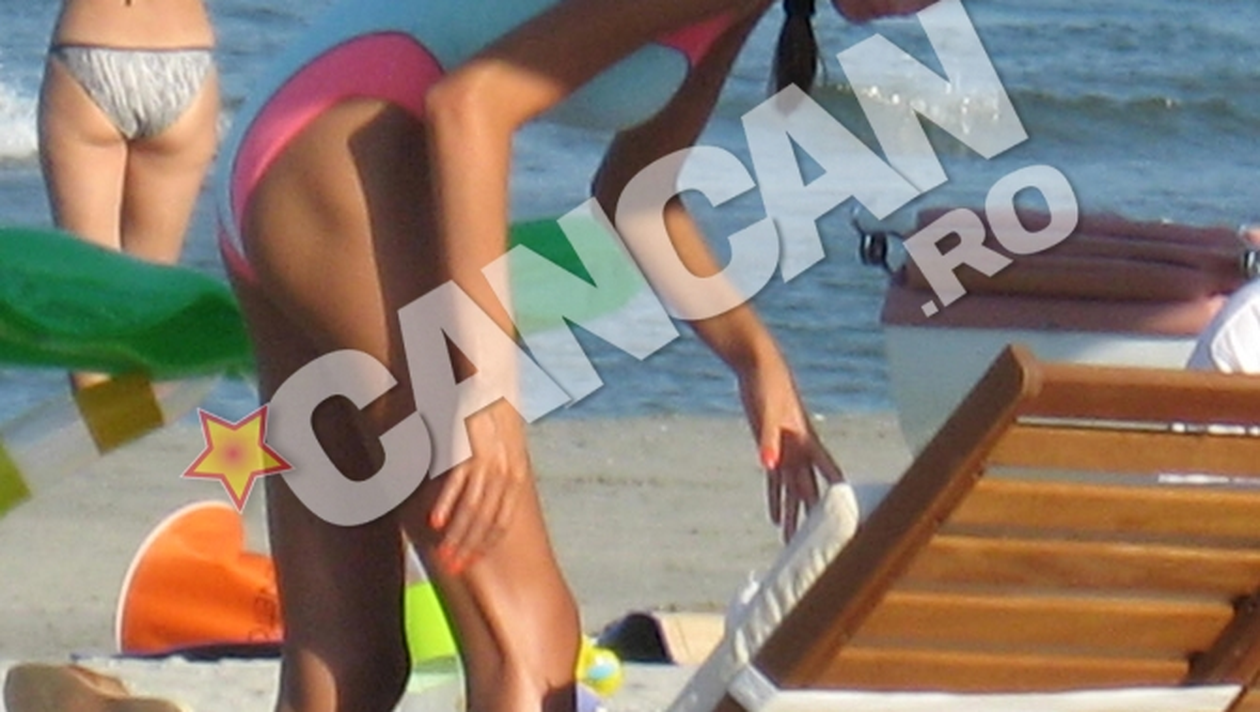 Fericita, Moni isi etala corpul de model pe plajele din Romania, multumita sa iasa din anonimat cu un costum de baie dintr-o singura bucata, in culori ce ieseau si ele in evidenta.