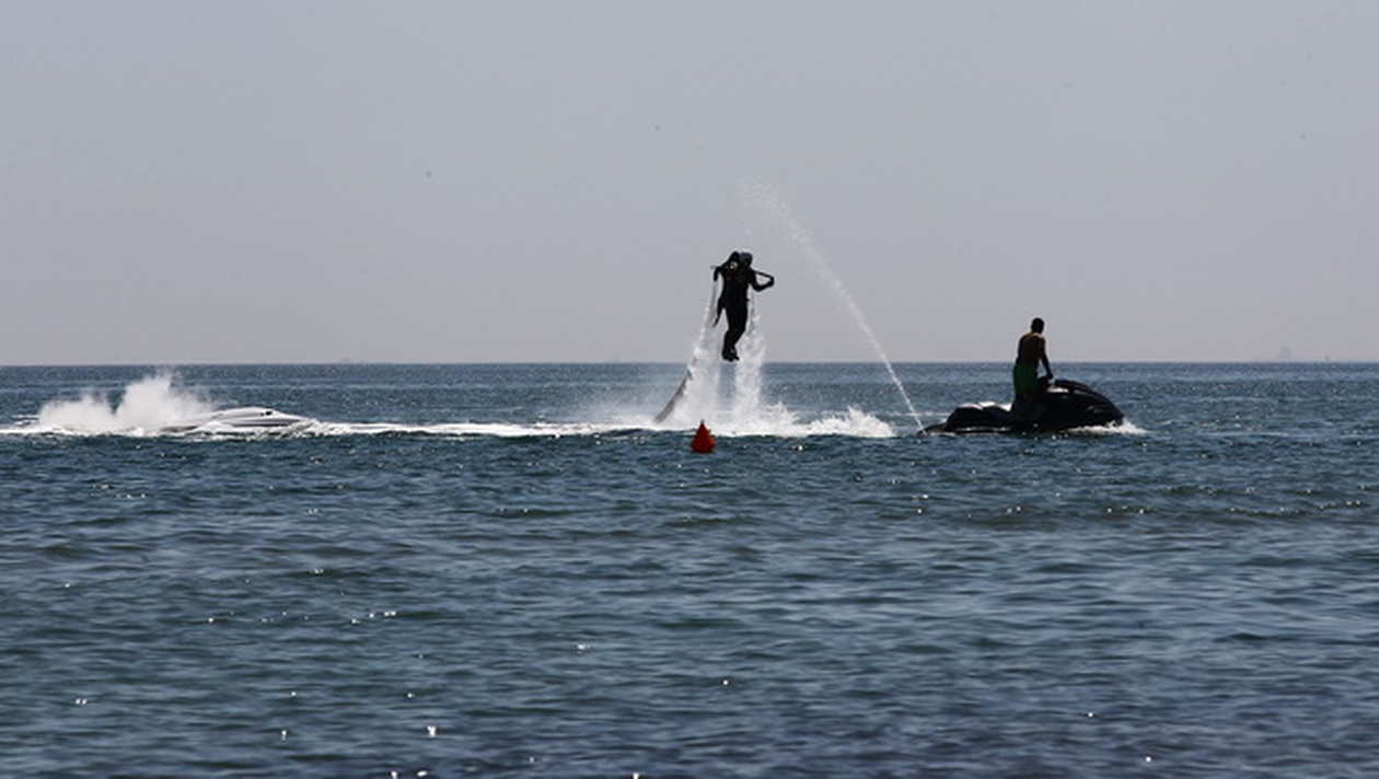 S-a dus vremea cand plimbarea cu banana sau cu skijet-ul erau cele mai tari senzatii de la mare. Acum la putere este Jetlev-ul, un "gadget" care te face sa zbori cu 40 de kilometri la ora.