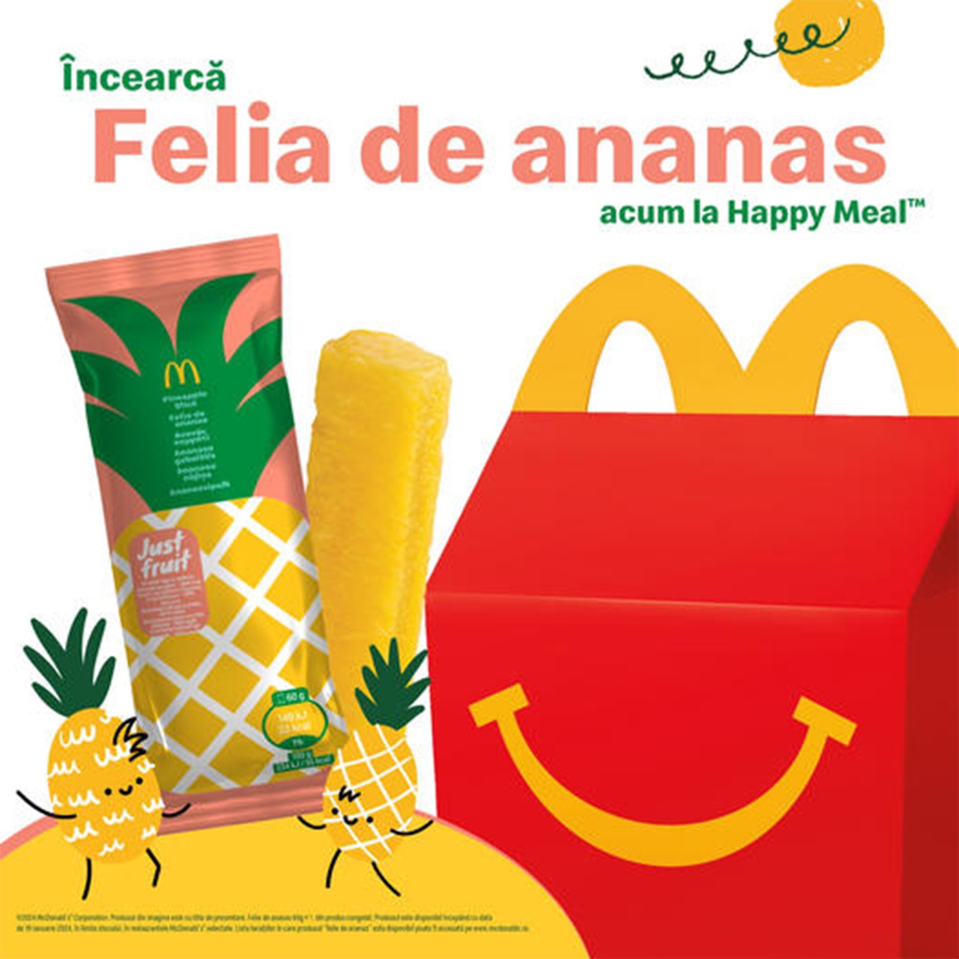 De această dată, lanțul de fast food a introdus în meniurile din România produsul „felie de ananas”. Acesta poate să fie comandat alături de meniul pentru copii, dar și separat.