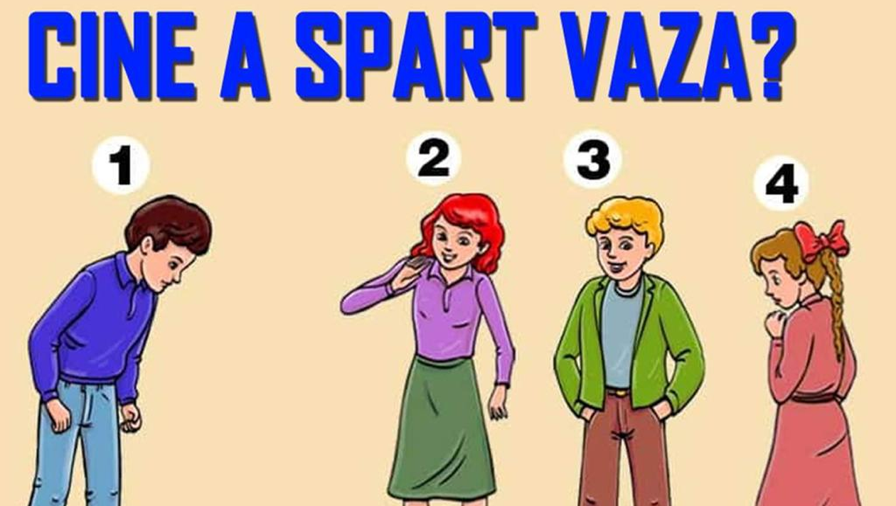 Dragi cititori, CANCAN.RO vă pune la dispoziție unul dintre cele mai interesante teste de personalitate. Tot ce trebuie să faci este să acorzi câteva minute din timpul tău și să faci anumite alegeri pentru a-ți da seama cum ești tu ca persoană. Cine a spart vaza dintre cei patru oameni prezenți în fotografia de mai sus? Lasă-ți intuiția să „zboare” liber și pune-ți mintea la contribuție doar câteva secunde. Nu există un răspuns corect, ci mai multe care-ți vor spune lucruri despre personalitatea ta. Ești pregătit/ă? Hai să dăm drumul distracției!