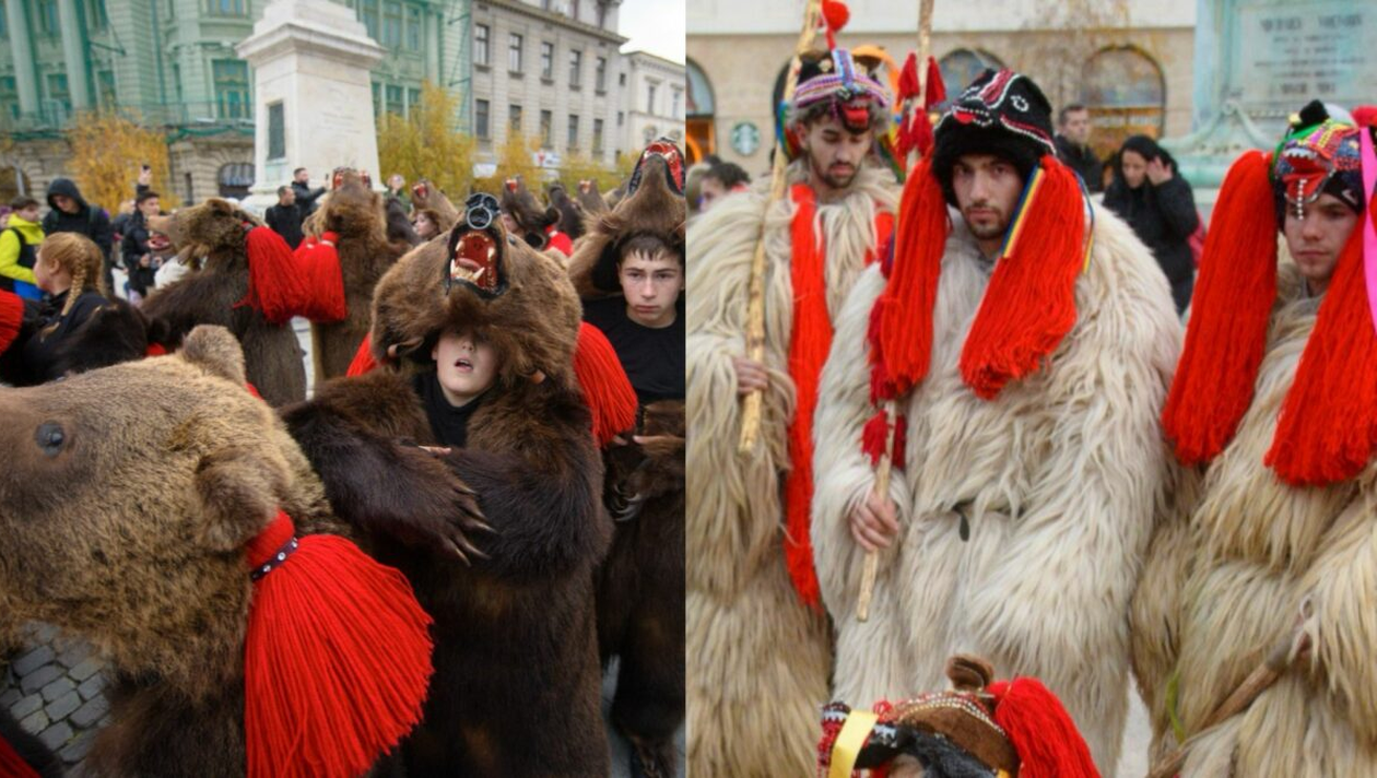 Apoi vine Ursul, probabil cel mai puternic simbol al Moldovei. Flăcăii se îmbracă în blănuri adevărate de urs, cu capul impunător al animalului pe creștet, decorat cu pampoane roșii țesute manual. Dansul ursului, lent și puternic, este o metaforă pentru moarte și renaștere, un ritual păgân adaptat pe parcursul secolelor. Când ursul dansează, mulțimea tace. Sunetul tobelor și mișcarea ritmică a blănii grele creează un moment aproape hipnotic.