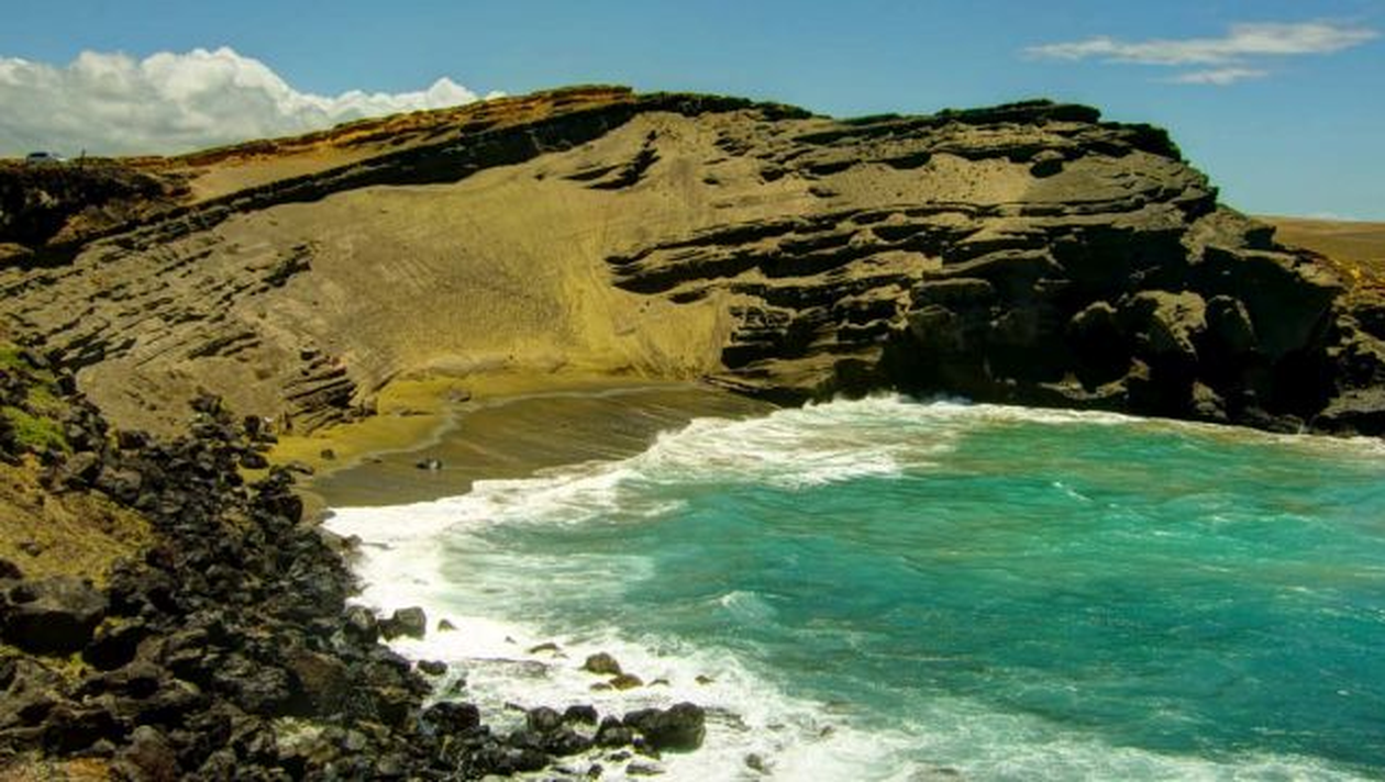 Pe Plaja Papakolea vei vedea cel mai verde nisip, colorat din cauza activitatii vulcanice din zona
