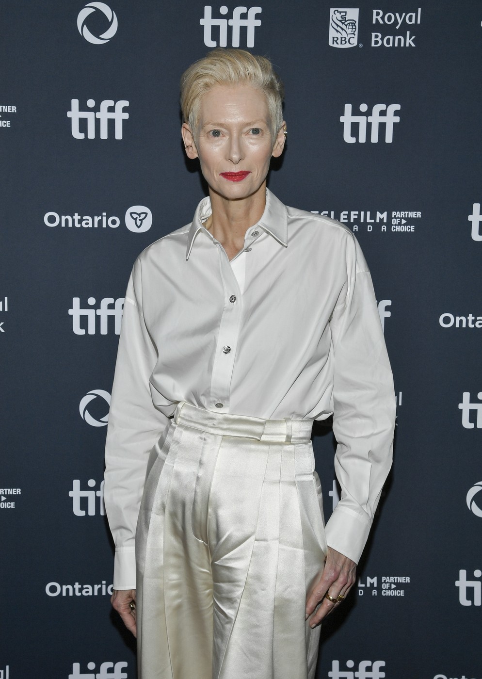Tilda Swinton a participat la premiera filmului „The Room Next Door” în cadrul Festivalului Internațional de Film de la Toronto 2024 la TIFF Lightbox. Swinton a fost una dintre puținele vedete care a optat pentru o nuanță mai deschisă la festivalul de film. Ea a purtat Chanel din cap până în picioare, inclusiv bijuterii, care include inelul Chanel Coco Crush din aur de 18k.