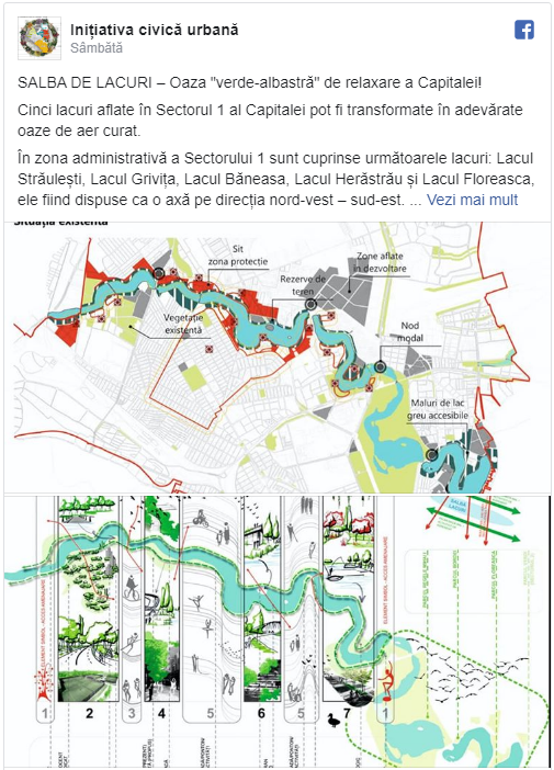 PUZ-ul Coordonator al Sectorului 1 al Capitalei poate soluționa lipsa accesibilității la „salba de lacuri” și poate crea cadrul pentru preluarea terenurilor mal de lac, susține Inițiativa civică urbană.