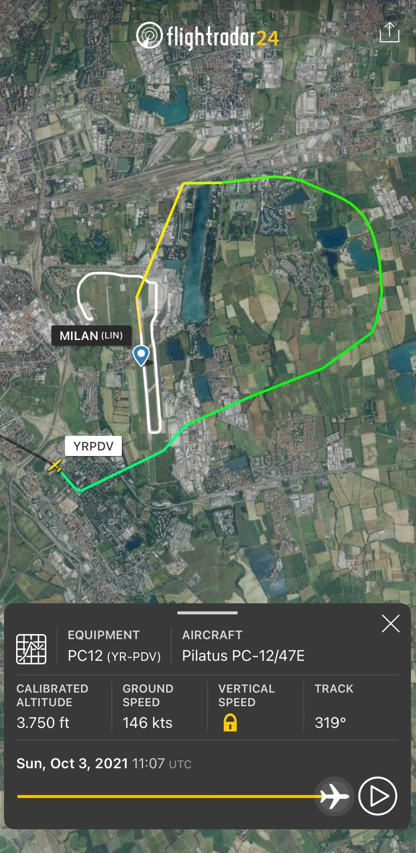Avionul decolase din Milano duminică, la ora 13:03 cu destinația în Italia, iar la scurt timp, 13:12, s-a prăbușit. Avionul a plecat din România pe 30 septembrie. Accidentul a avut loc lângă o stație de metrou din zona suburbană a orașului Milano.